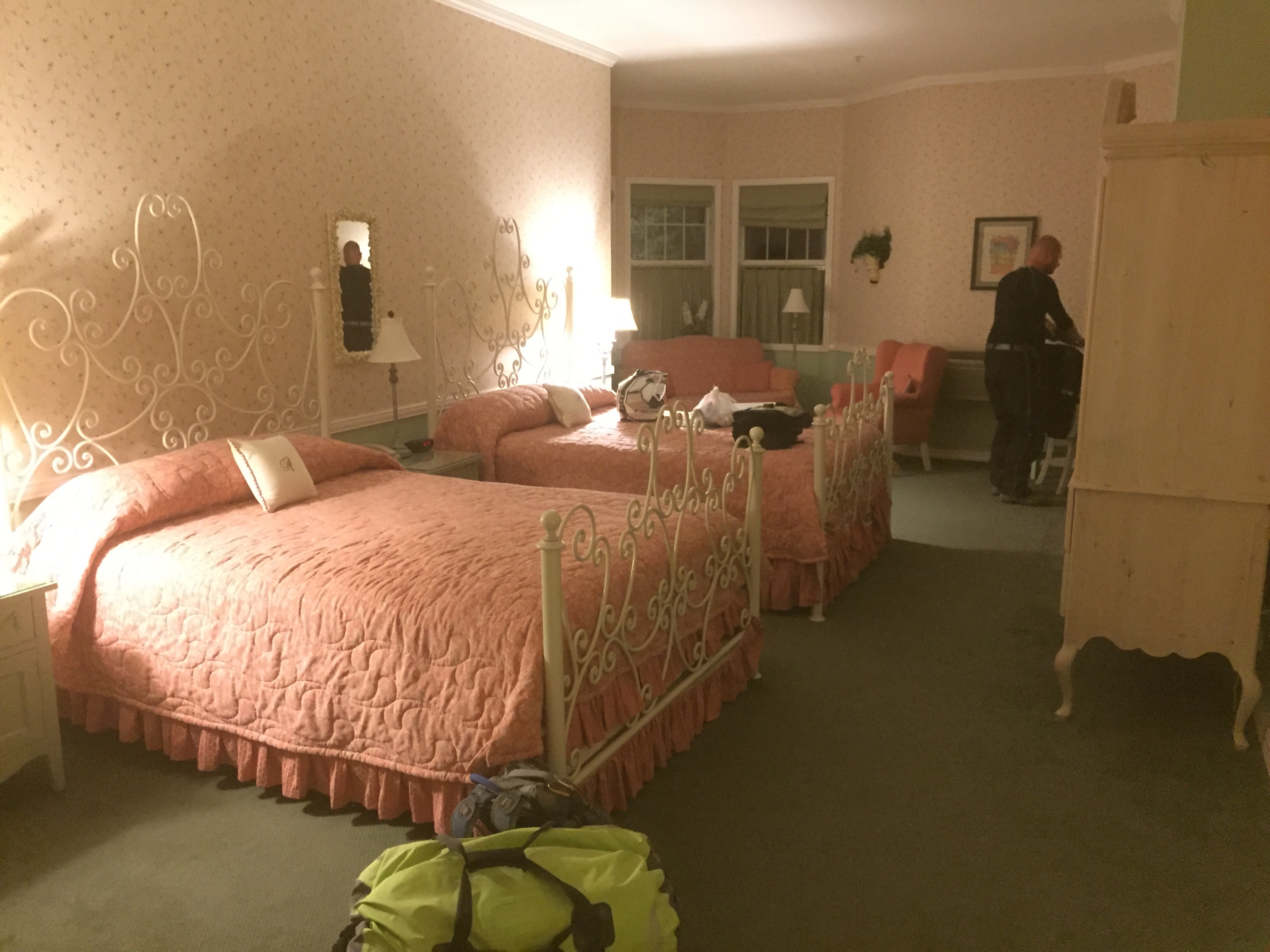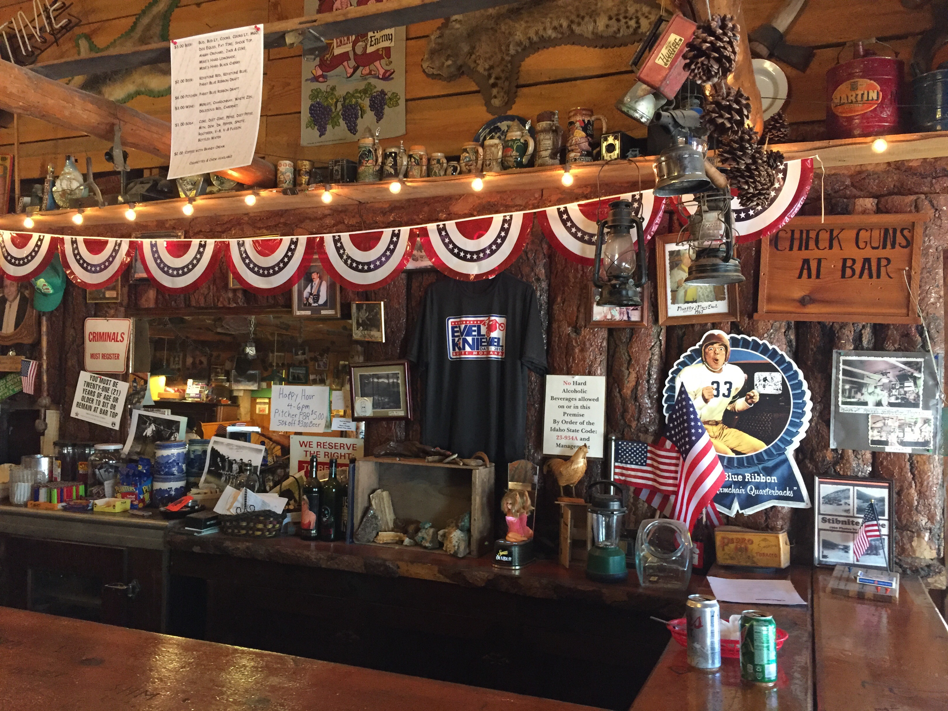 That night, as Mark posted, we finished our bottle of Crown (the sleeves are handy dust wipes for our face shields) and headed over to the VFW wearing our PJs, headlamps and flip flops. No one batted an eye when we came in. We ran into Chris the bartender from the saloon again and some ol’ timers telling stories before we turned in.
