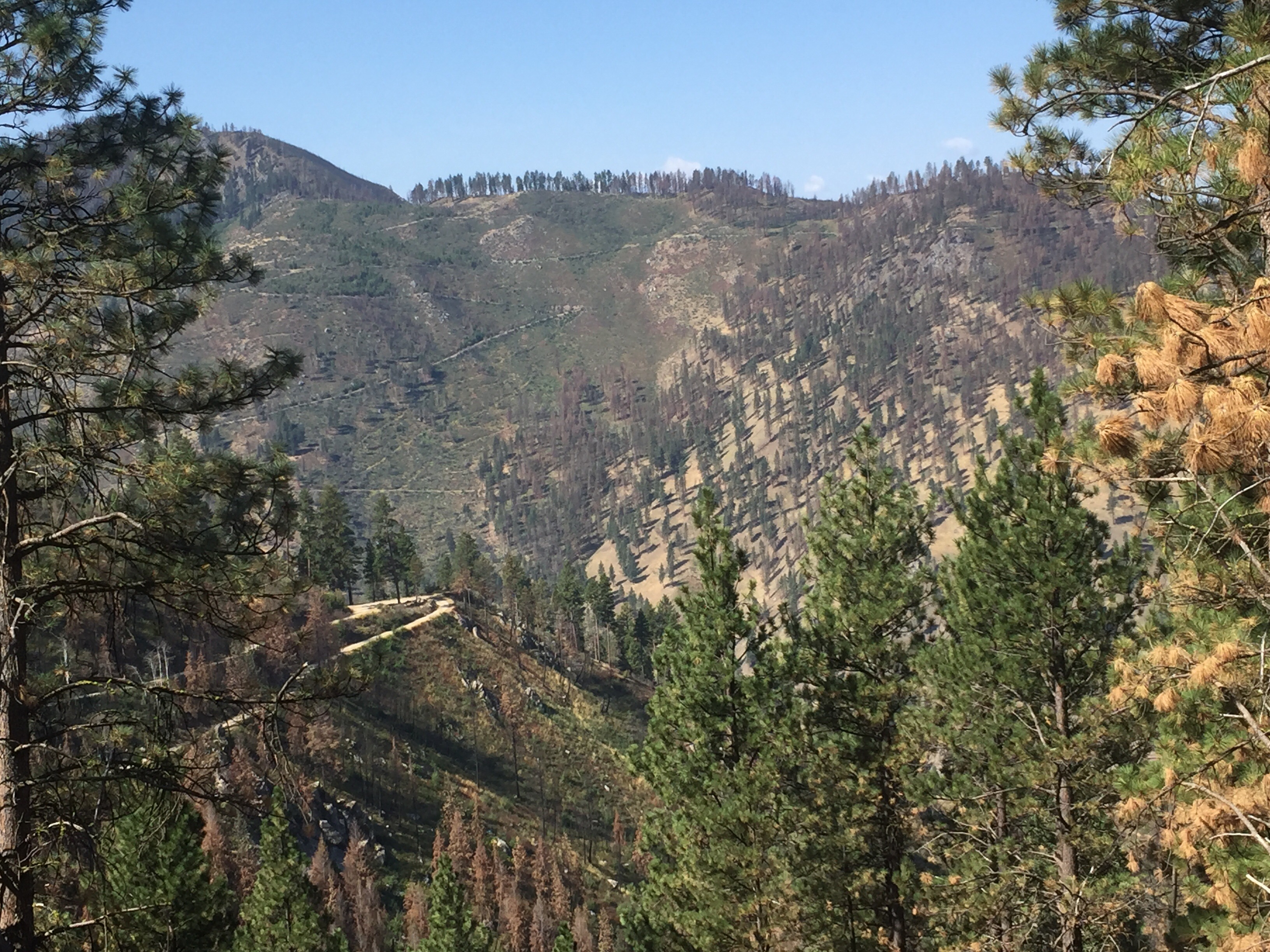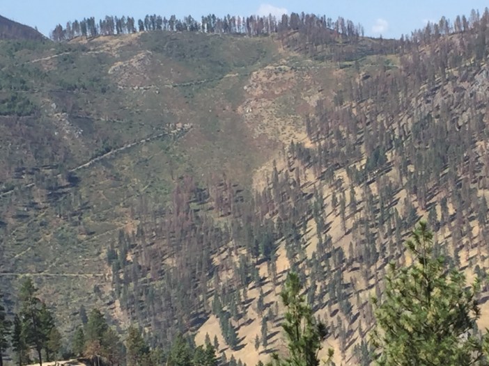 In these pictures if you zoom in you can see our tracks switchback left and right up the mountain.