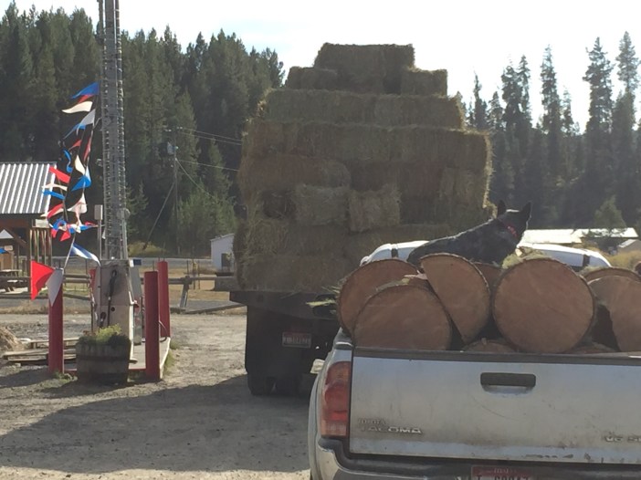We did come across a dog catching a ride on the back of a truckload of wood at the store.