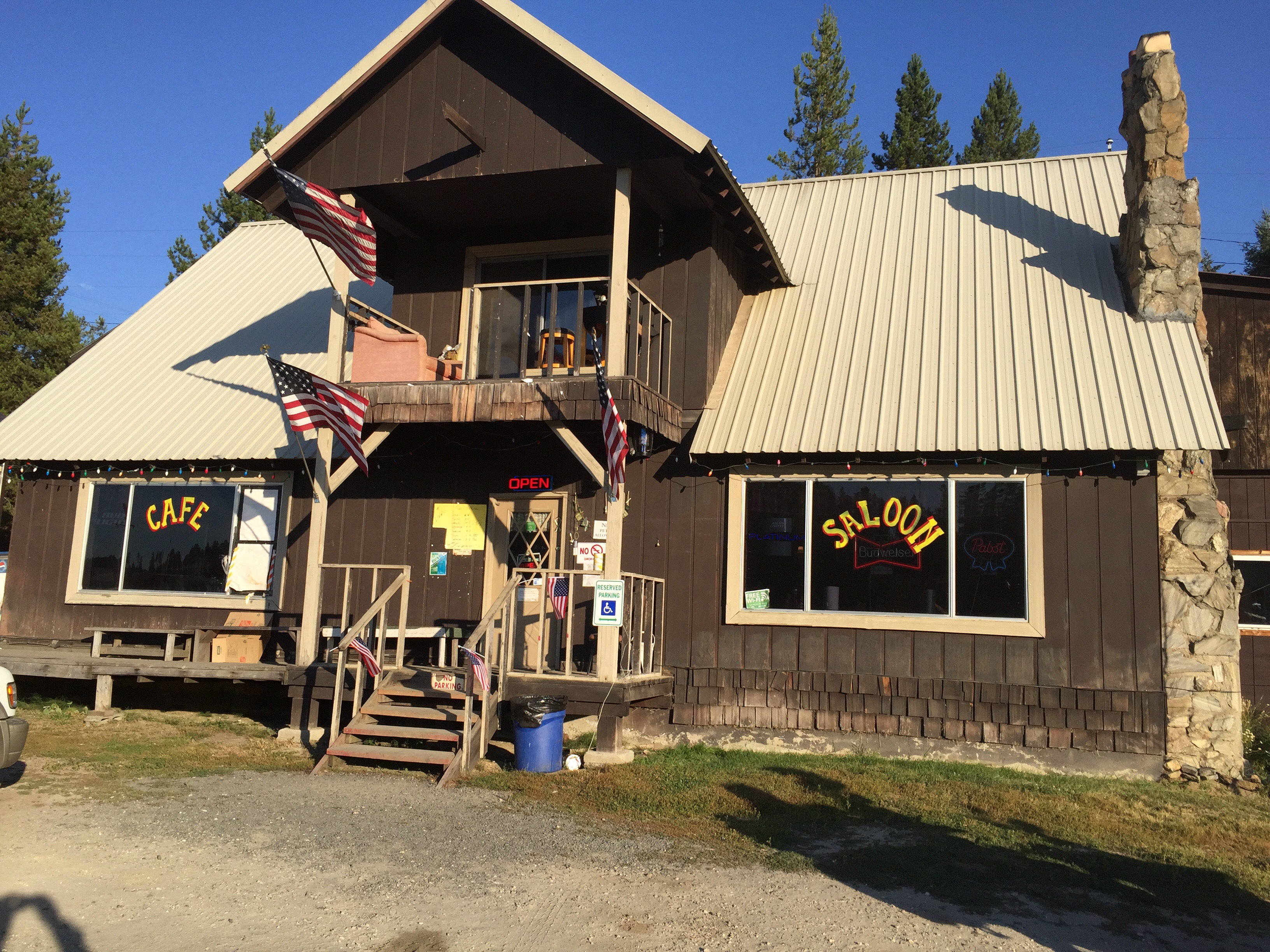 After a few more hours riding along the river we made it into Elk City. We stopped for fuel and food at the saloon where we met bartender Chris from New York. Luckily we caught steak night.